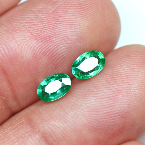 1.03 Cts Natural Emerald Green Loose 6x4 mm Gemstone Fine Oval Cut pair Zambia