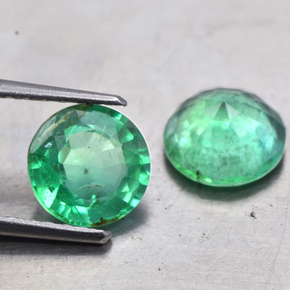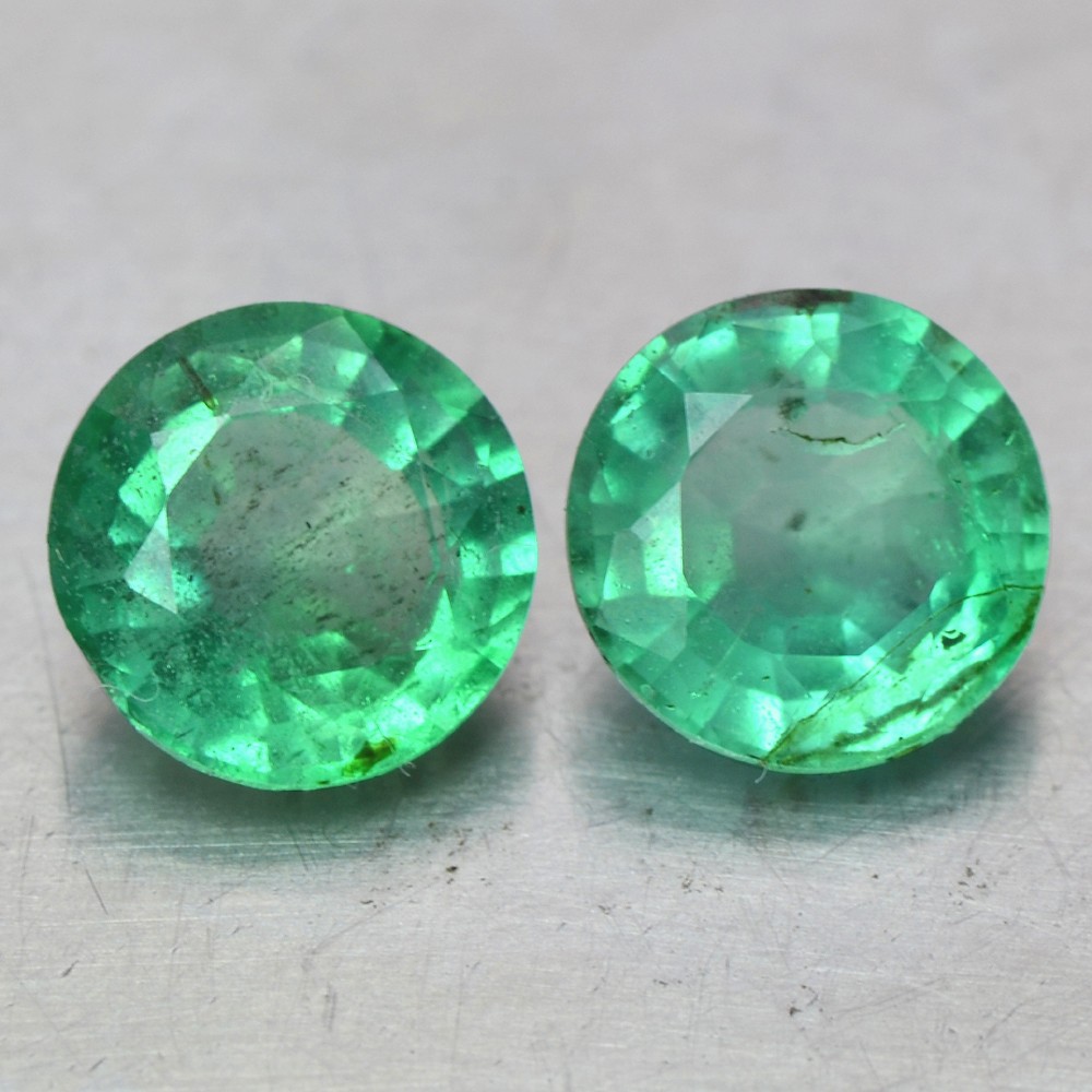 1.33 cts Natural Top Rich Green Emerald Round Cut Pair 5.8 mm Zambia Gemstone