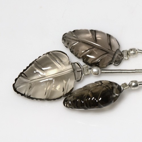 14.50 Cts Natural Top Brown Smoky Quartz Drill Leaf Carving Brazil Set Layout