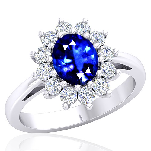 14K White Gold 1.62 cts Blue Sapphire Stone Diamond Cocktail Engagement Women
