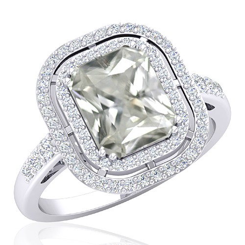 14K White Gold 3.42 cts Sapphire Gemstone Diamond Cocktail Vintage Engagement