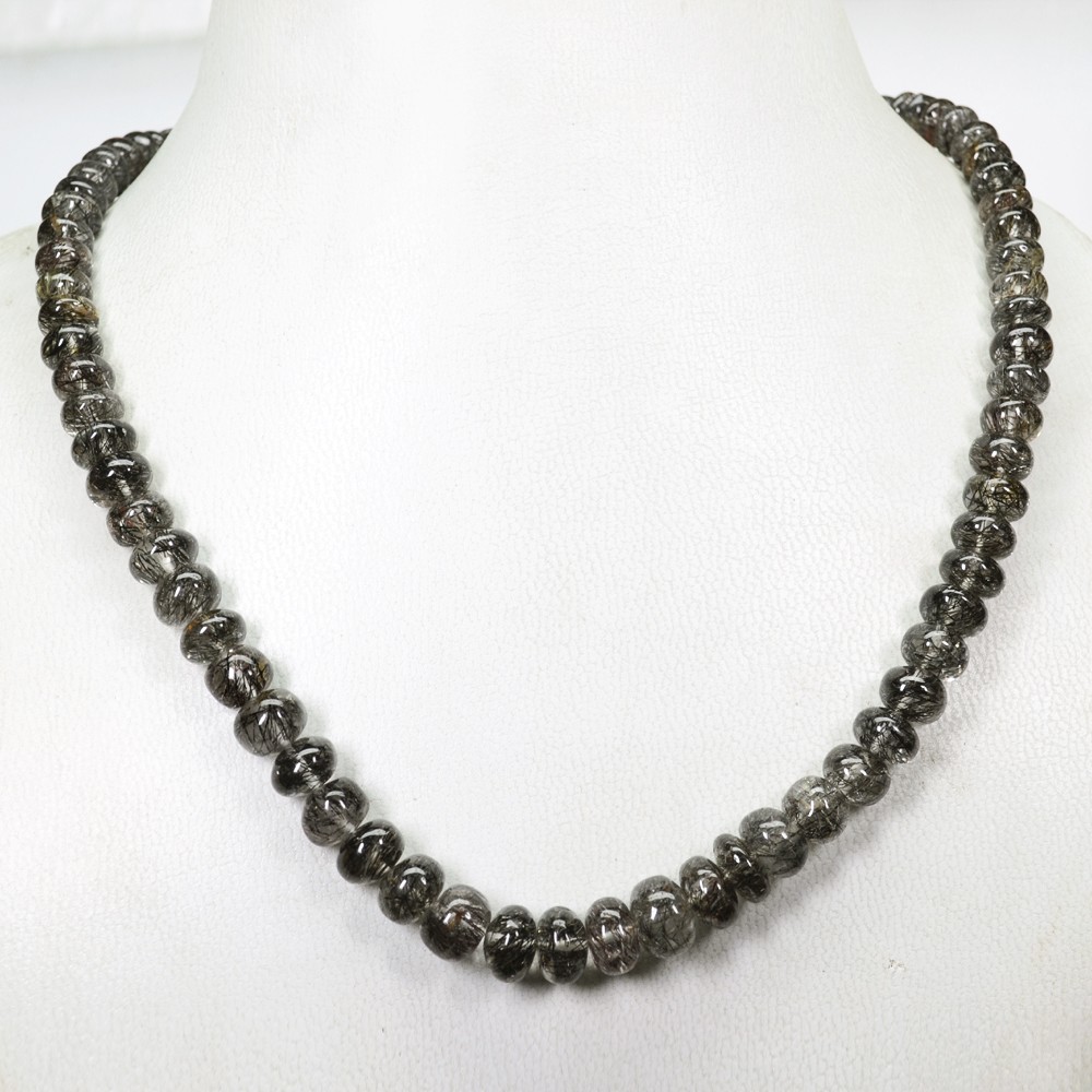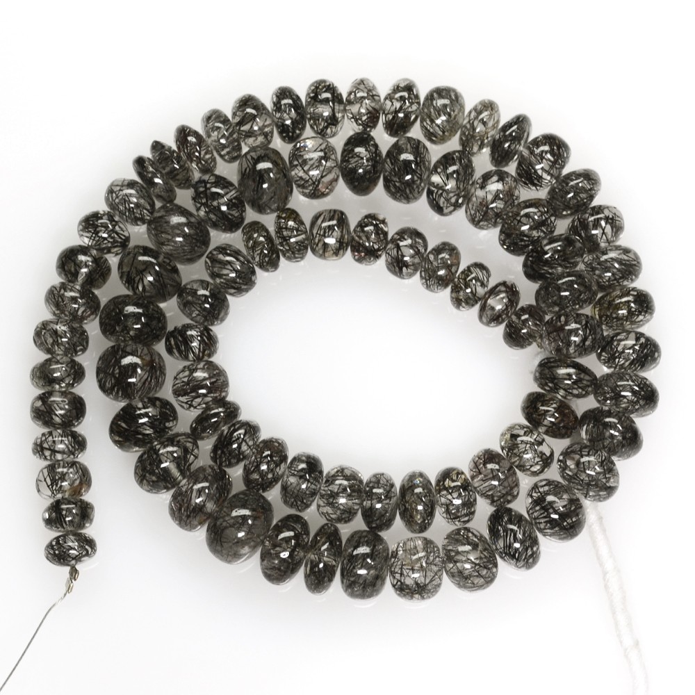 178.75 CTs Natural Top Quality Black Rutile Quartz Plain Rondelle Beads 1L 16.5"