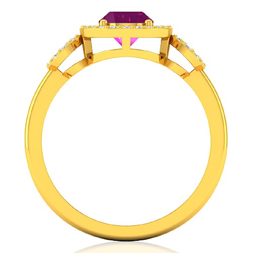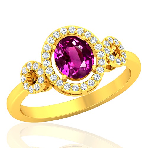 18K Yellow Gold 1.29 cts Pink Sapphire Stone Diamond Women Fine Jewelry Ring