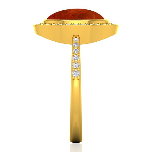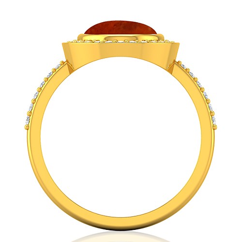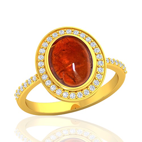 18K Yellow Gold 3.81 cts Oval Cabochon 10 x 8 mm Rhodolite Garnet Gemstone With 0.25 cts Round Cut Diamond Cocktail Vintage Engagement Women Wedding Designer Fine Jewelry Ring