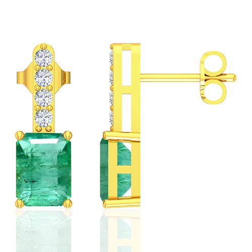 18k Yellow Gold 3.92 cts Emerald Stone Diamond Designer Ladies Earrings