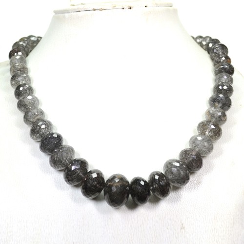 458.43 cts Natural Rutile Quartz Faceted Rondelle Loose Beads 1-L Strand 16.5"