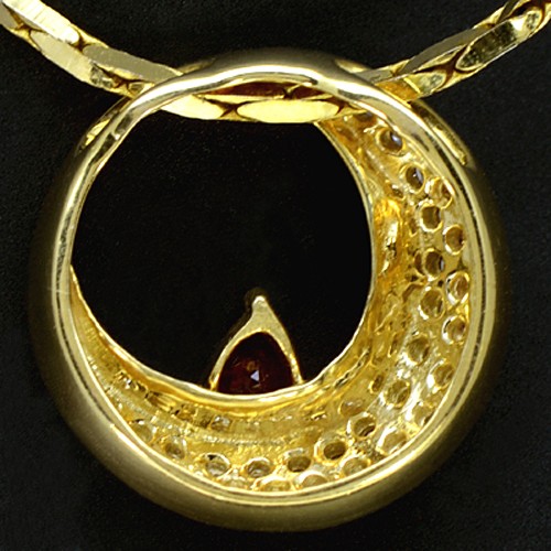 9k Gold Natural Red Ruby Loose Gemstone Diamond Pendant With Chain