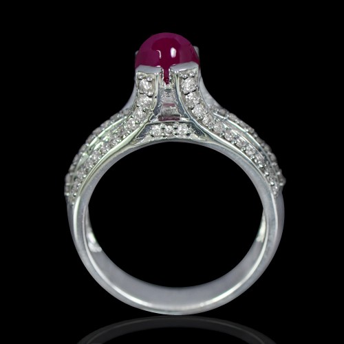 14K Pure White Gold Natural 1.63 Carat Unheated Red Ruby Diamond Ladies Fine
