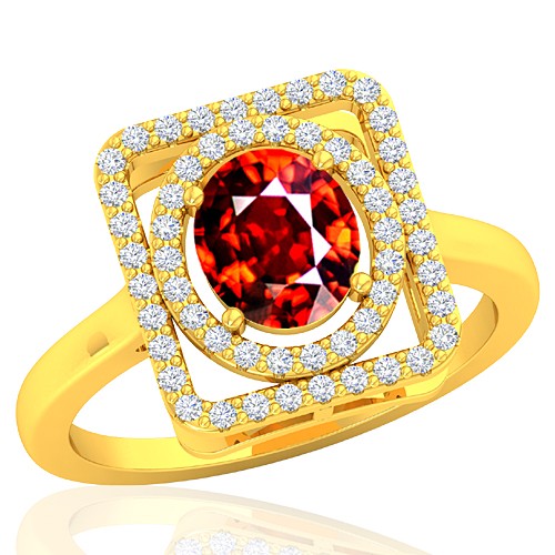 18K Yellow Gold 1.66 cts Oval Cut 7.5 x 6.1 mm Rhodolite Garnet Gemstone With 0.35 cts Round Cut Diamond Cocktail Vintage Engagement Women Wedding Designer Fine Jewelry Ring