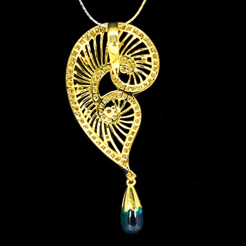 14K Pure Gold Natural Hydro Emerald Diamond Ladies Pendant With Chain