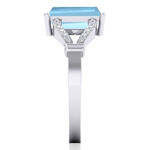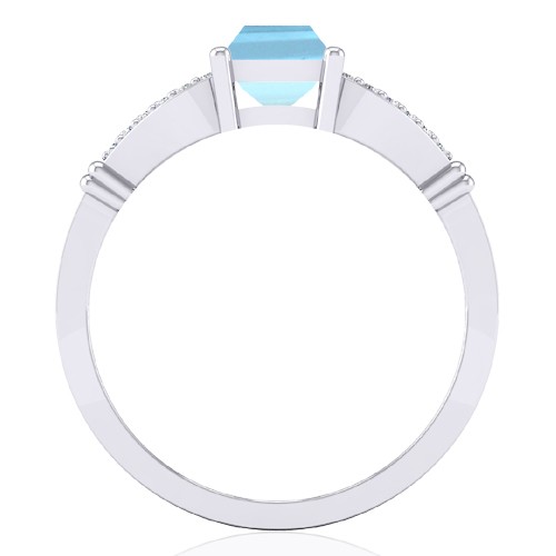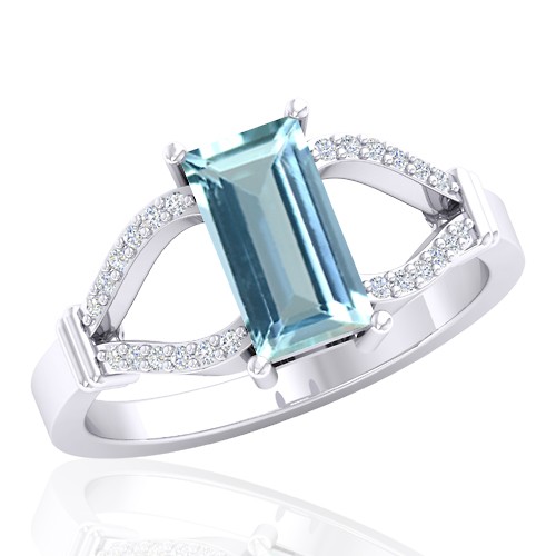 14K White Gold 1.19 cts Aquamarine Stone Diamond Wedding Fine Jewelry Ring