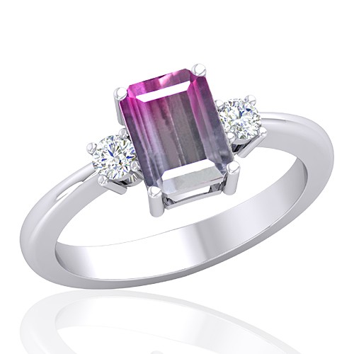 14K White Gold 1.52 cts Tourmaline Stone Diamond Cocktail Designer Fine Jewelry