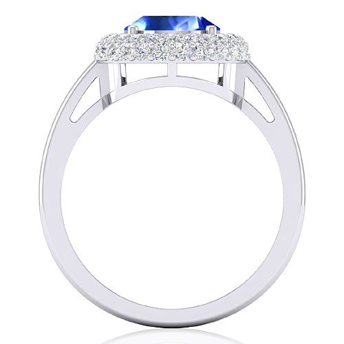 14K White Gold 2.33 cts Tanzanite Stone Diamond Women Wedding Fine Jewelry Ring