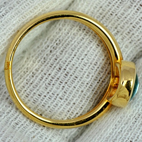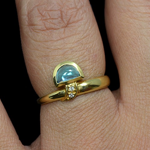 18K Pure Yellow Gold Natural Blue Topaz Diamond Ladies Wedding cocktail Ring
