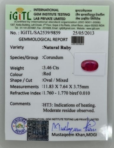 3.46 Cts Natural Beautiful Top AAA+ Rare Red Color Ruby Loose Gemstone Oval Cut Shape Certified Untreated Gems From Oldmogok Rare Size 11.8 x 7.6 x 3.7 mm