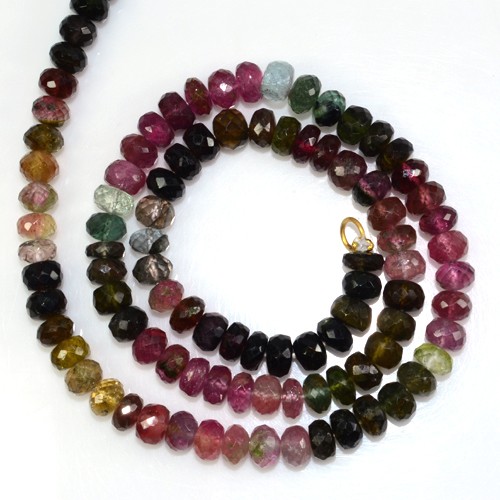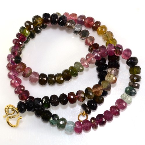 117.14 Cts Natural Top Multicolor Tourmaline Faceted Rondelle Beads Necklace 1-L