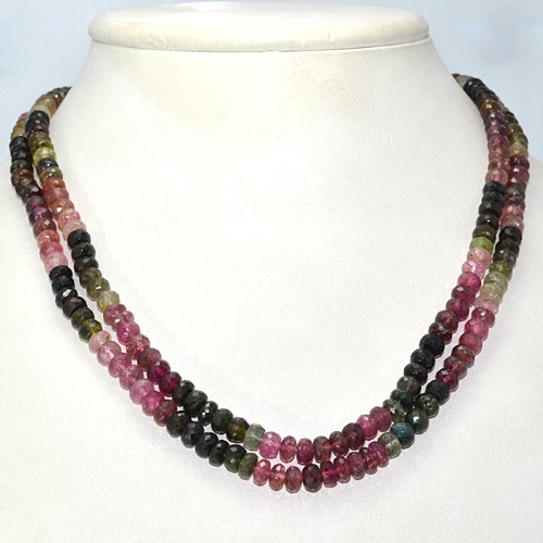 228.70 Cts Natural Top Multicolor Tourmaline Faceted Rondelle Beads Necklace 2-L