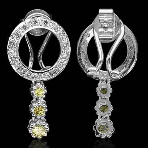 18k Pure White Gold 0.30 cts Natural Yellow Color Diamond With Beautifu l0.33 cts Diamonds Ladies Vintage Fine Designer Jewelry Earrings