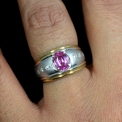 14k Pure White & Yellow Gold With Beautiful Natural Top Pink Sapphire Loose Gemstone Diamond Wedding Cocktail Designer Ladies Fine Jewelry Ring