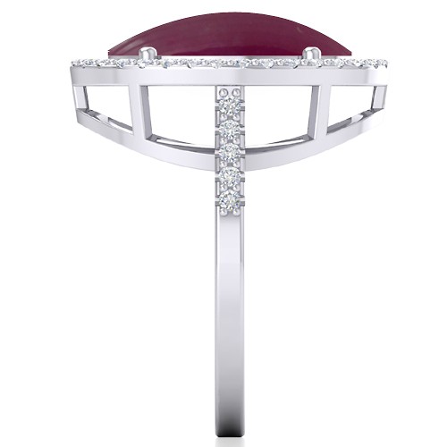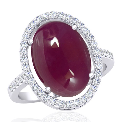 14K White Gold 13.12 cts Oval Cabochon 14.5 x 10.5 mm Ruby Gemstone With 0.45 cts Round Cut Diamond Cocktail Vintage Engagement Women Wedding Designer Fine Jewelry Ring