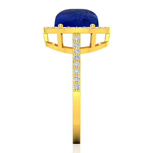 18K Yellow Gold 2.26 cts Oval Cabochon 8.7 x 6.8 mm Blue Sapphire Gemstone With 0.42 cts Round Cut Diamond Cocktail Vintage Engagement Women Wedding Designer Fine Jewelry Ring