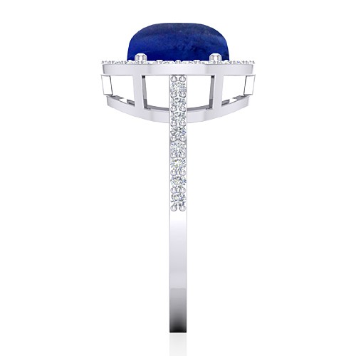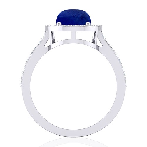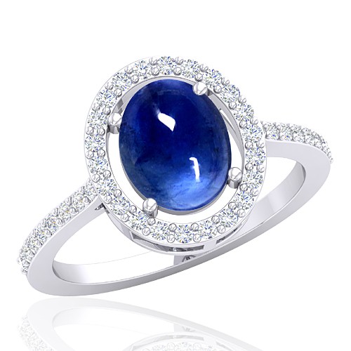 14K White Gold 2.26 cts Oval Cabochon 8.7 x 6.8 mm Blue Sapphire Gemstone With 0.42 cts Round Cut Diamond Cocktail Vintage Engagement Women Wedding Designer Fine Jewelry Ring