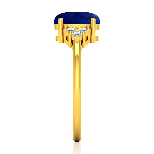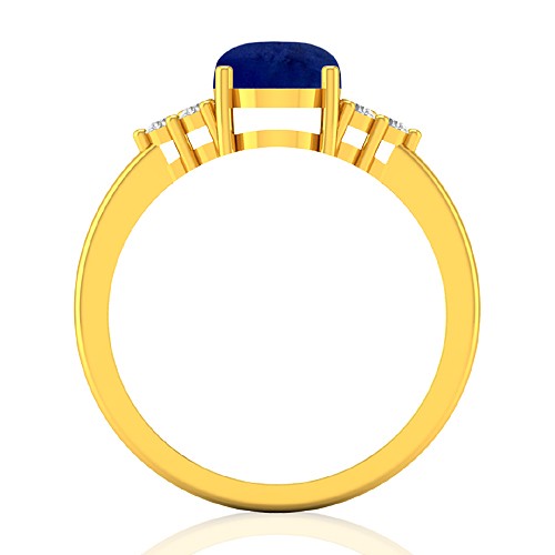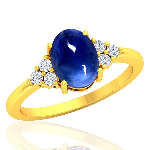 18K Yellow Gold 2.26 cts Oval Cabochon 8.7 x 6.8 mm Sapphire Gemstone With 0.25 cts Diamond Cocktail Vintage Engagement Women Wedding Designer Fine Jewelry Ring