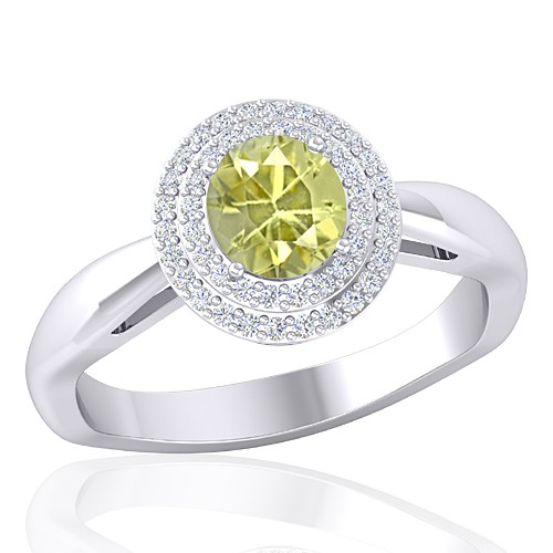 14K White Gold 1.01 cts Yellow Sapphire Stone Diamond Women Wedding Fine Jewelry Ring