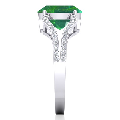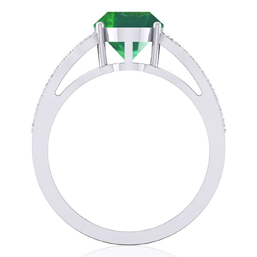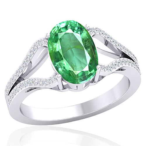 14K White Gold 2.25 cts Oval Cut 10.4 x 7.3 mm Emerald Gemstone With 0.25 cts Round Cut Diamond Cocktail Vintage Engagement Women Wedding Designer Fine Jewelry Ring