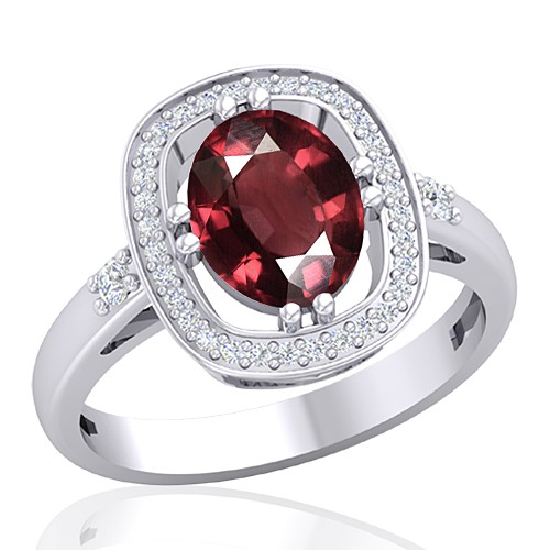 14K White Gold 2.15 cts Rhodolite Garnet stone Diamond Engagement Women Jewelry Ring