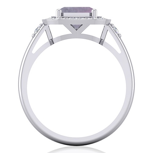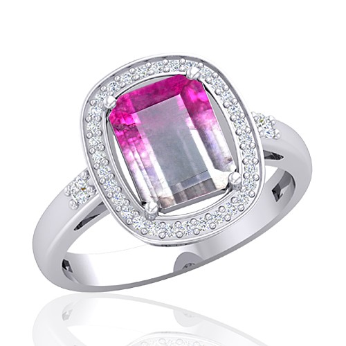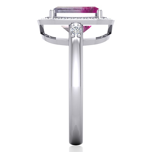 14K White Gold 2.13 cts Emerald Cut 9 x 7 mm Tourmaline Gemstone Diamond Cocktail Ring