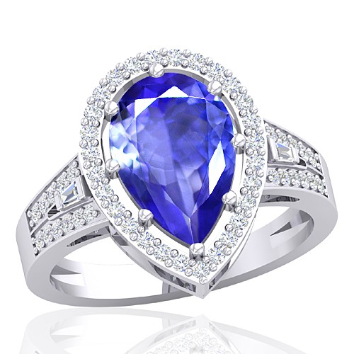 14K White Gold 2.6 cts Pear Cut 12.2 x 8.2 mm Tanzanite Gemstone With 0.40 cts Round Cut Diamond Cocktail Vintage Engagement Women Wedding Designer Fine Jewelry Ring