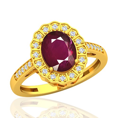 18K Yellow Gold 2.08 cts Ruby Stone Diamond Cocktail Women Wedding Designer Fine Ring