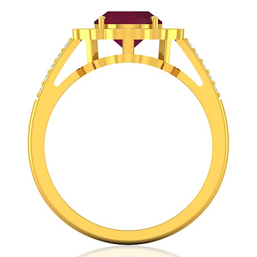 18K Yellow Gold 2.08 cts Oval Cut 9 x 7 mm Ruby Gemstone With 0.20 cts Round Cut Diamond Cocktail Vintage Engagement Women Wedding Designer Fine Jewelry Ring