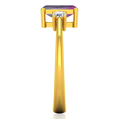 18K Yellow Gold 1.52 cts Emerald Cut 8 x 6 mm Tourmaline Gemstone With 0.25 cts Round Cut Diamond Cocktail Vintage Engagement Women Wedding Designer Fine Jewelry Ring