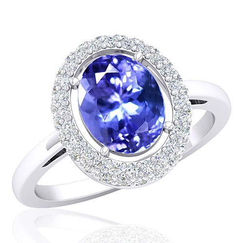 14k White Gold 2.37 cts Oval Cut 9.5 x 7.5 mm Tanzanite Gemstone With 0.60 cts Round Cut Diamond Cocktail Vintage Engagement Women Wedding Designer Fine Jewelry Ring