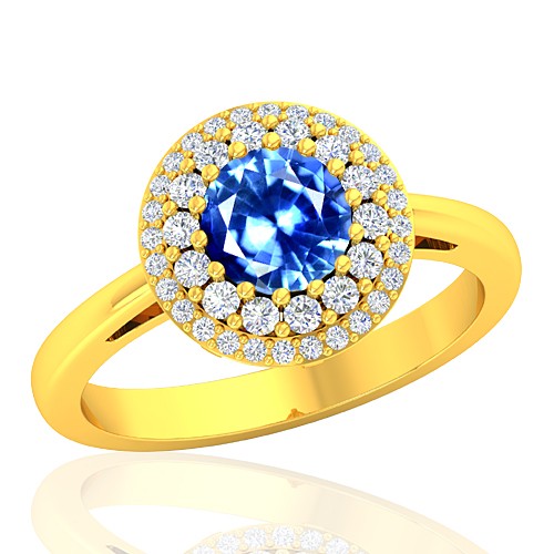 18K Yellow Gold 1.0 cts Sapphire Stone Diamond Women Designer Fine Jewelry Ring