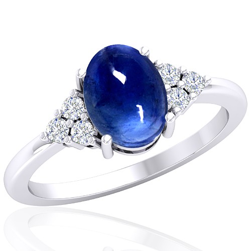 14K White Gold 2.26 cts Oval Cabochon 8.7 x 6.8 mm Sapphire Gemstone With 0.25 cts Diamond Cocktail Vintage Engagement Women Wedding Designer Fine Jewelry Ring