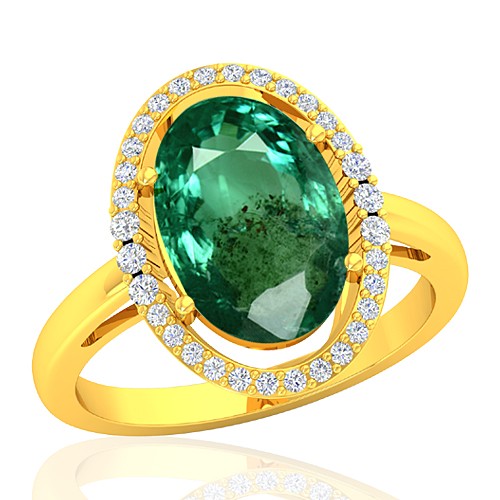 18K Yellow Gold 3.62 cts Emerald Stone Diamond Designer Fine Jewelry Ring