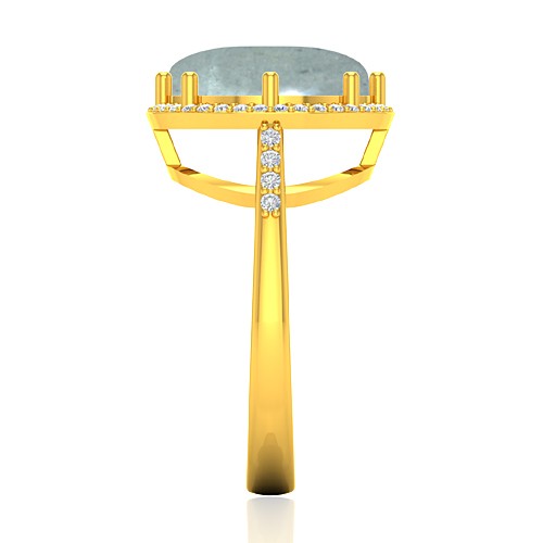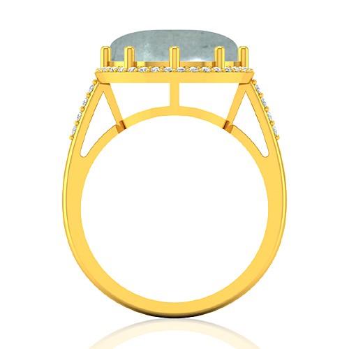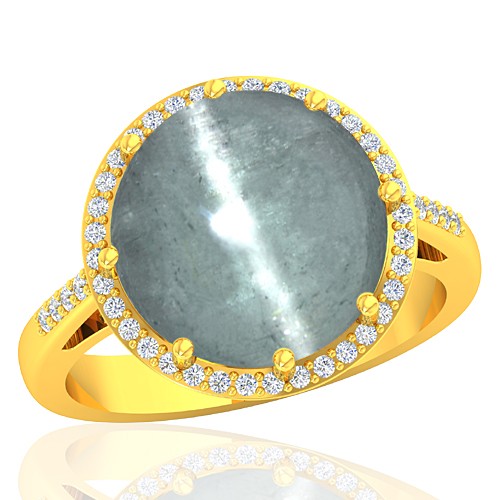 18K Yellow Gold 10.84 cts Round Cabochon 12.5 mm Tourmaline Gemstone With 0.25 cts Round Cut Diamond Cocktail Vintage Engagement Women Wedding Designer Fine Jewelry Ring