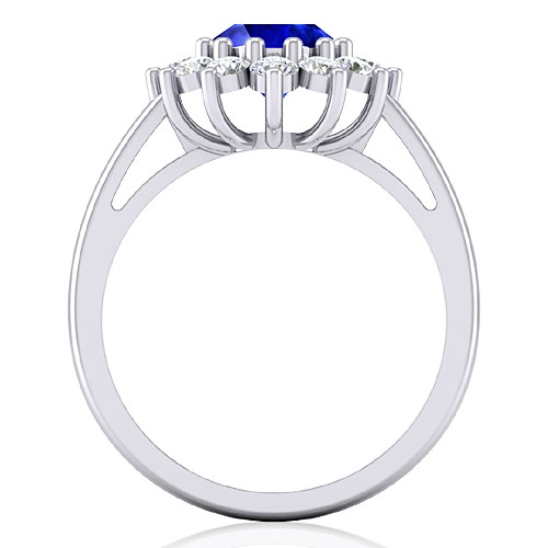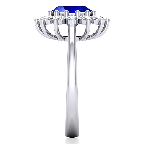14K White Gold 1.62 cts Blue Sapphire Stone Diamond Cocktail Engagement Women Jewelry Ring