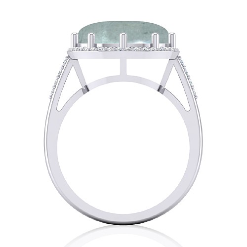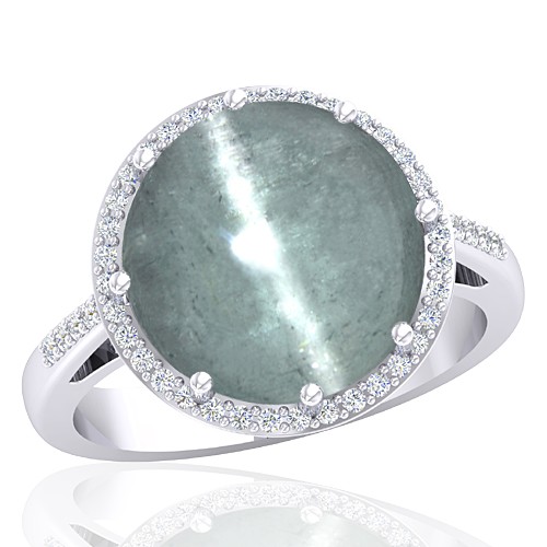 14K White Gold 10.84 cts Round Cabochon 12.5 mm Tourmaline Gemstone With 0.25 cts Round Cut Diamond Cocktail Vintage Engagement Women Wedding Designer Fine Jewelry Ring