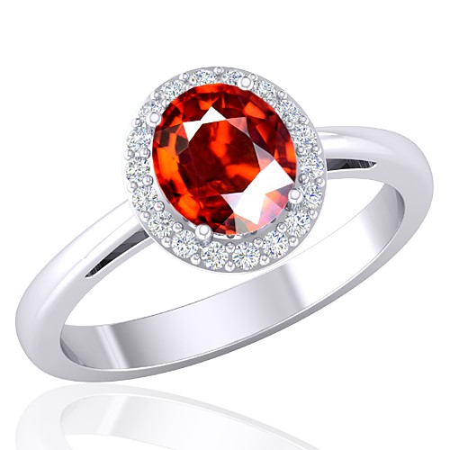 14K White Gold 1.38 cts Oval Cut 7.4 x 6.3 mm Rhodolite Garnet Gemstone With 0.20 cts Round Cut Diamond Cocktail Vintage Engagement Women Wedding Designer Fine Jewelry Ring