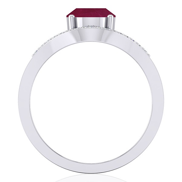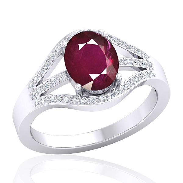 14K White Gold 2.08 cts Oval Cut 9 x 7 mm Ruby Gemstone With 0.21 cts Round Cut Diamond Cocktail Vintage Engagement Women Wedding Designer Fine Jewelry Ring