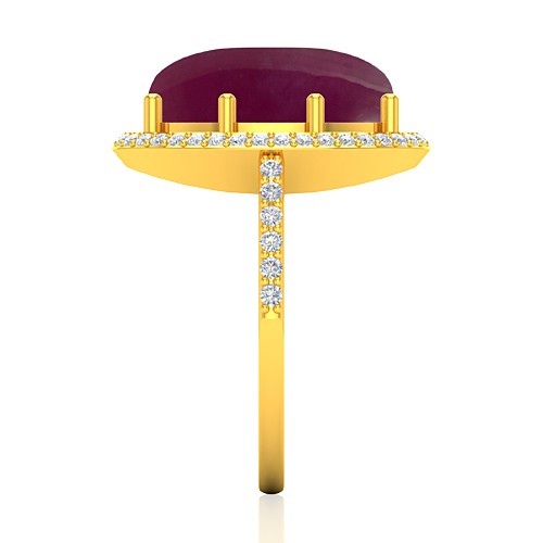 18K Yellow Gold 13.12 Cts Oval Cabochon 14.5 x 10.5 mm Ruby Gemstone With 0.40 cts Round Cut Diamond Cocktail Vintage Engagement Women Wedding Designer Fine Jewelry Ring
