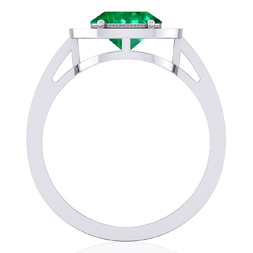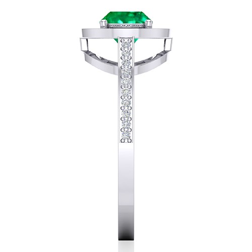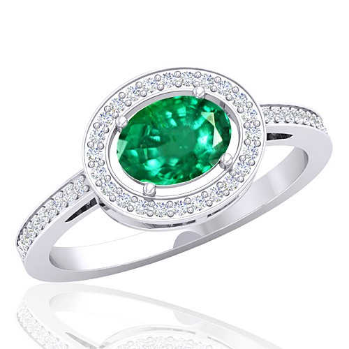 14K White Gold 1.05 Cts Oval Cut 7.4 x 5.5 mm Emerald Gemstone With 0.22 cts Round Cut Diamond Cocktail Vintage Engagement Women Wedding Designer Fine Jewelry Ring