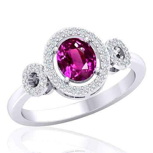 14K White Gold 1.29 cts Oval Cut 6.5 x 5.5 mm Pink Sapphire Gemstone With 0.30 cts Round Cut Diamond Cocktail Vintage Engagement Women Wedding Designer Fine Jewelry Ring
