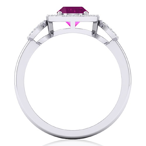 14K White Gold 1.29 cts Pink Sapphire Stone Diamond Women Fine Jewelry Ring