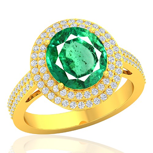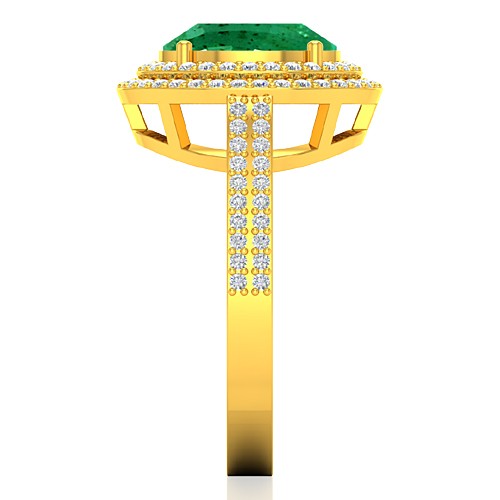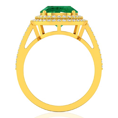 18K Yellow Gold 4.22 cts Emerald Gemstone Diamond Engagement Women Designer Fine Jewelry Ring