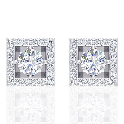14K White Gold 0.38 cts 3.6 mm Round Cut Shape Main stone Diamond Gemstone With 0.22 cts Diamond Designer Fine Jewelry Women Earrings